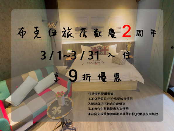 3月份入住不分平假日及房型享9折優惠!